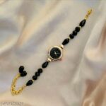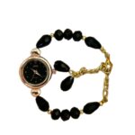 A stylish beaded-strap women’s analog watch with a sleek black dial, quartz movement, and scratch-resistant finish — perfect for ever