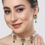 Step into timeless sophistication with the Gleaming Gold Choker Jewellery Set. Crafted with high-quality alloy and finished with a premium gold plating, this exquisite set includes a beautifully designed choker necklace and matching earrings. Perfect for festive occasions, weddings, or parties, it complements both traditional and modern attires effortlessly. With its adjustable fit, this set ensures comfort along with style — making it a must-have addition to your jewellery collection.